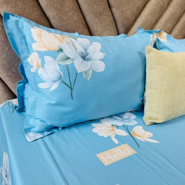Cotton Bedsheet - PR Teal Flower - Sri Lanka