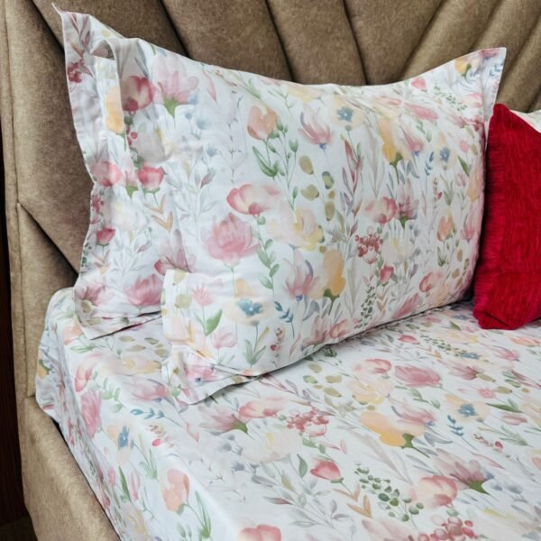 Cotton Bedsheet - PR White Floral - Sri Lanka
