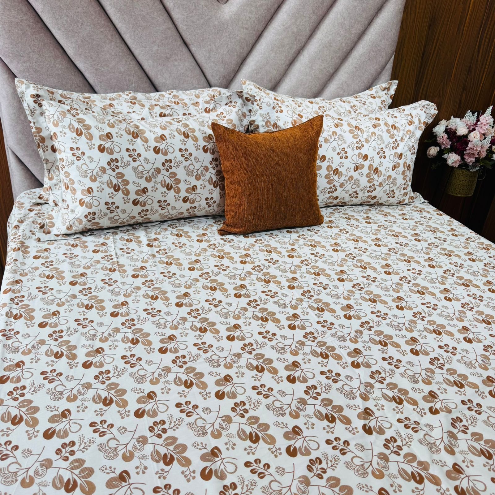 Cotton Bedsheet – PR Brown Leaves – Sri Lanka