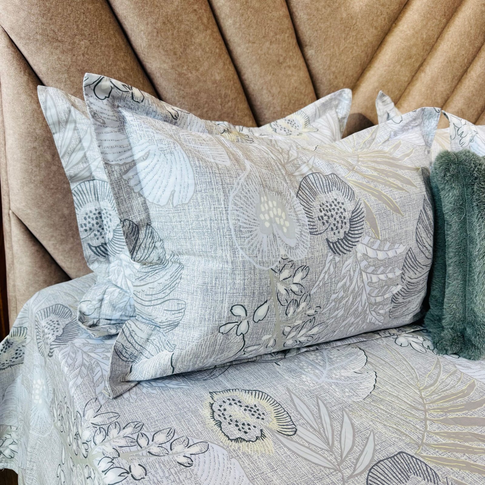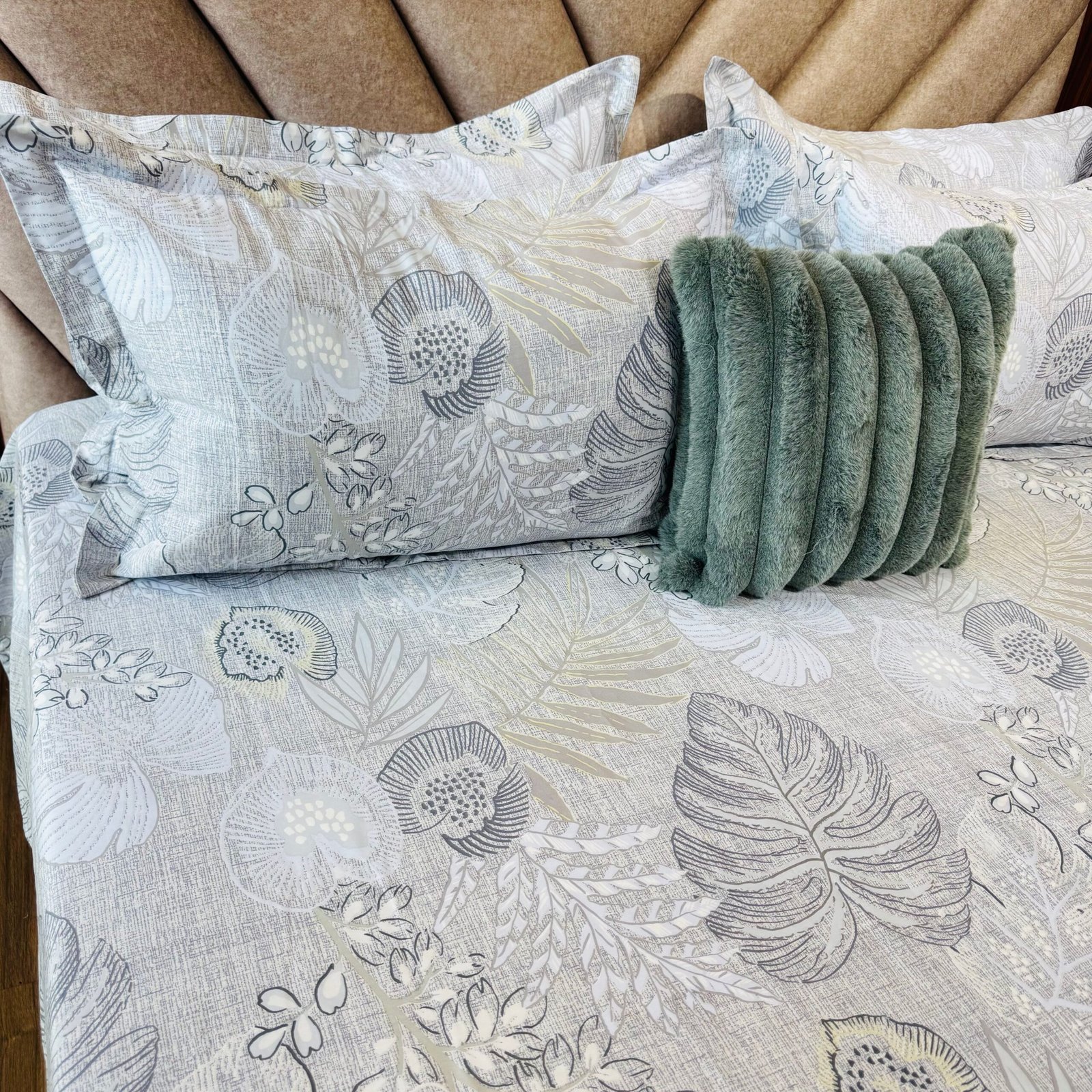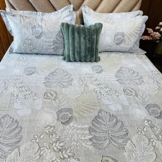 Cotton Bedsheet – PR Grand Leaf Grey – Sri Lanka