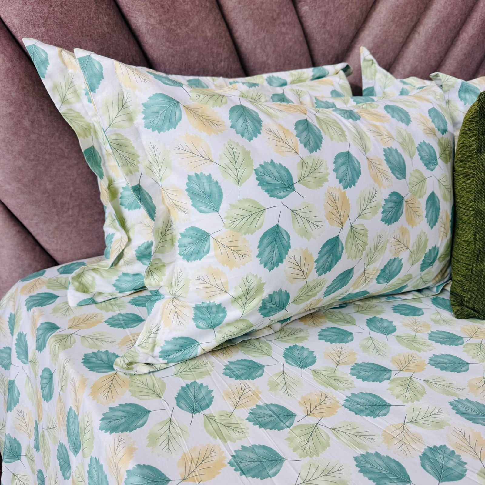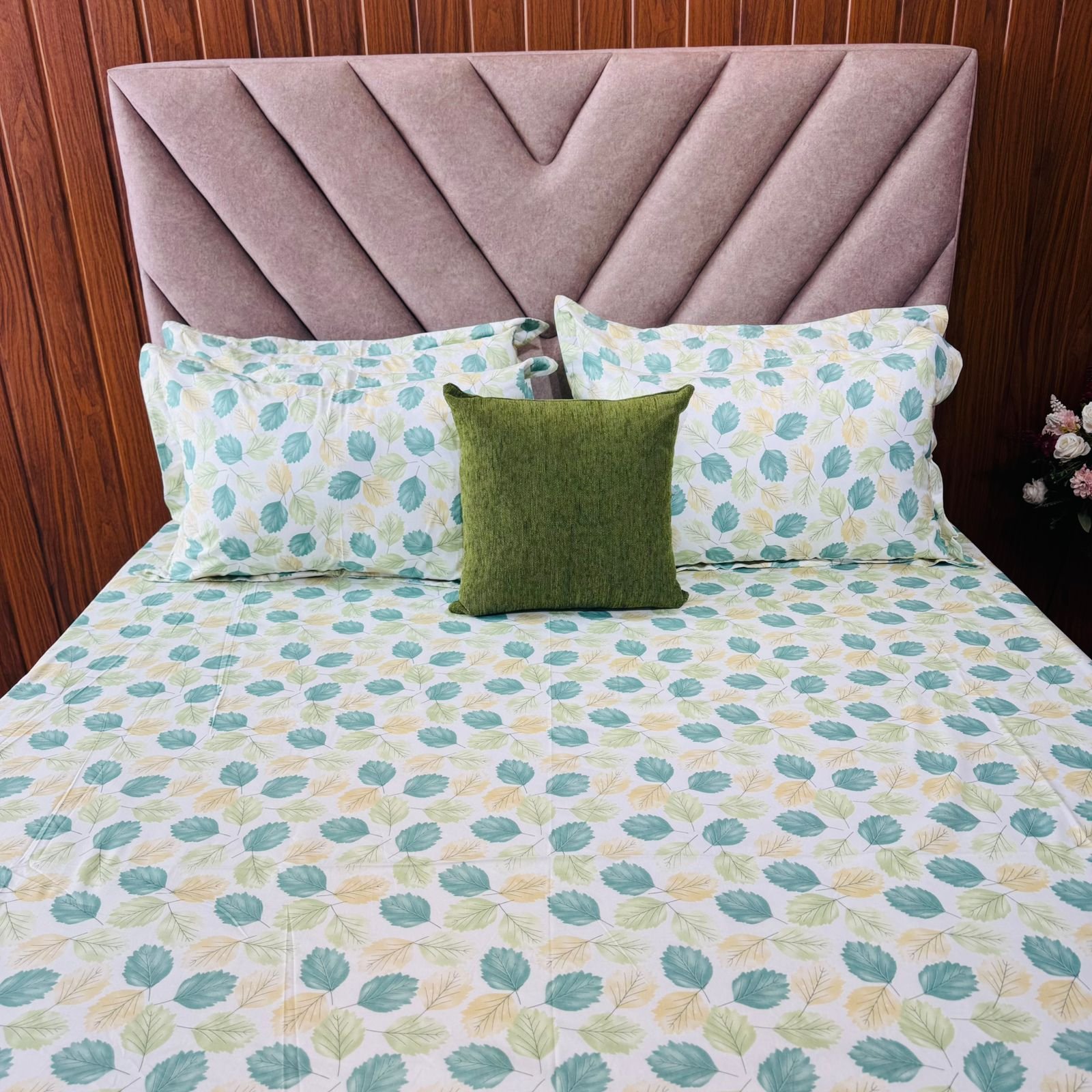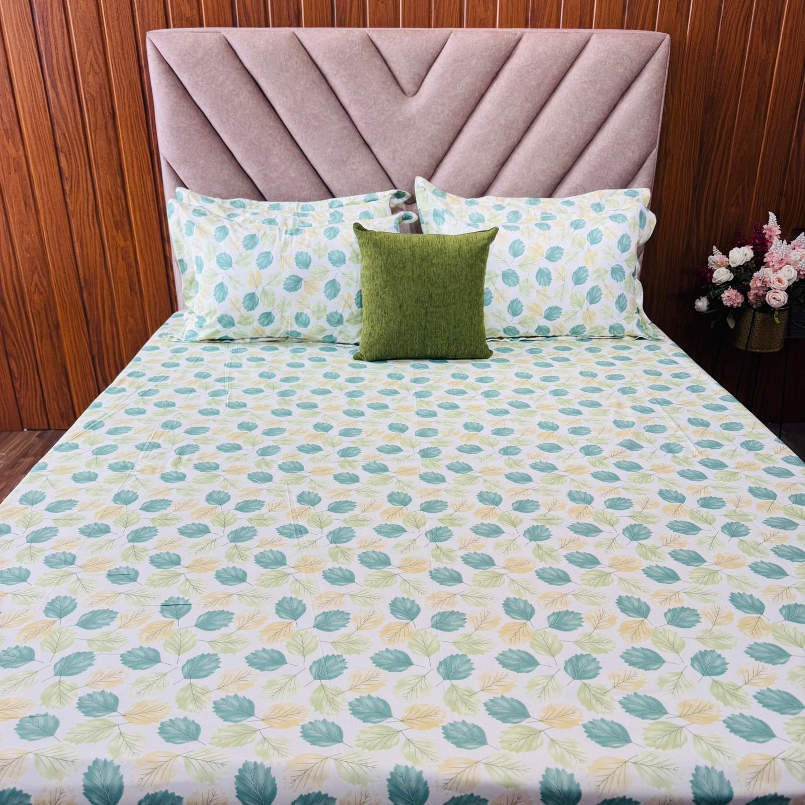 Cotton Bedsheet – PR Green Leaves – Sri Lanka