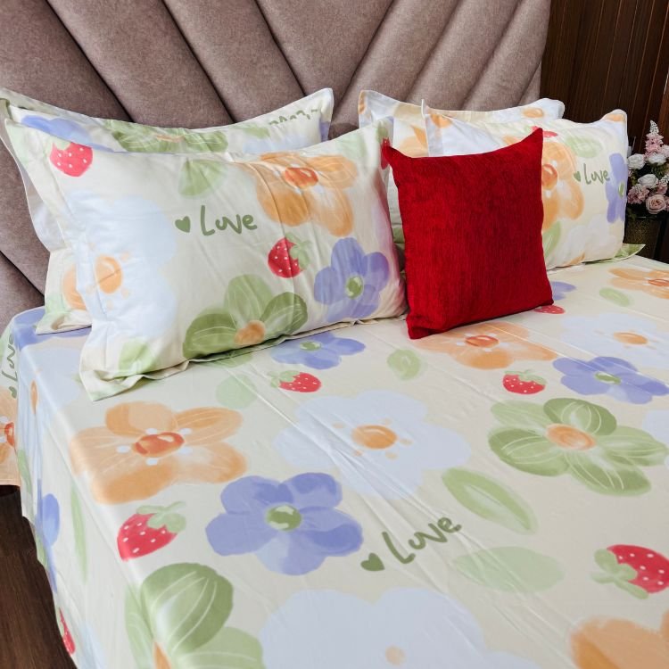 Cotton Bedsheet – PR Green Love Floral – Sri Lanka
