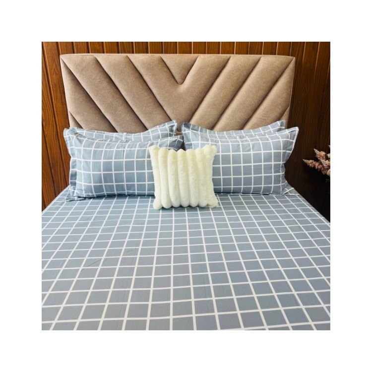 Cotton Bedsheet – PR Grey Check – Sri Lanka