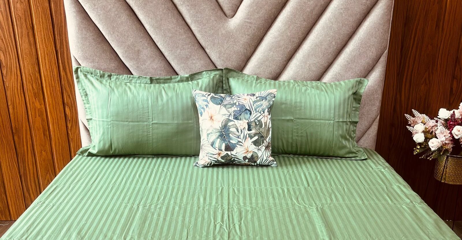 Egyptian Stripe Bed Sheet – Sage Green – Sri Lanka